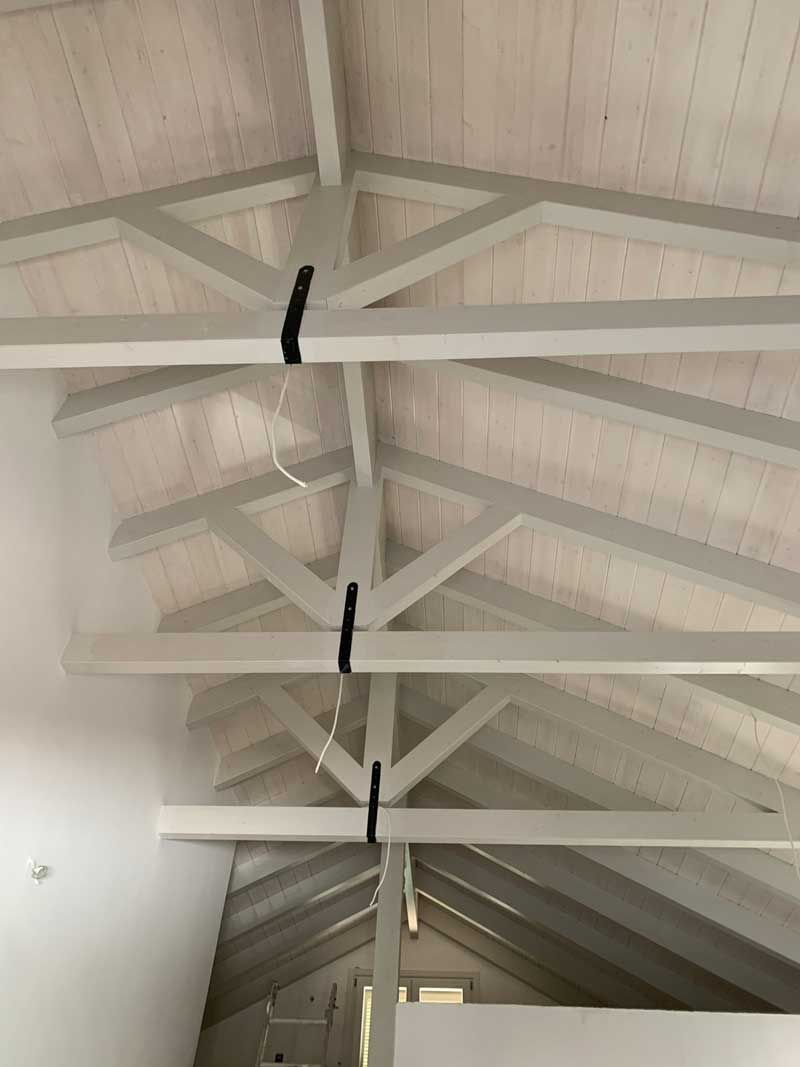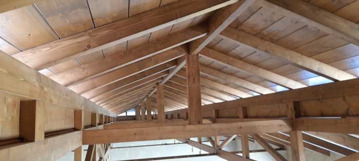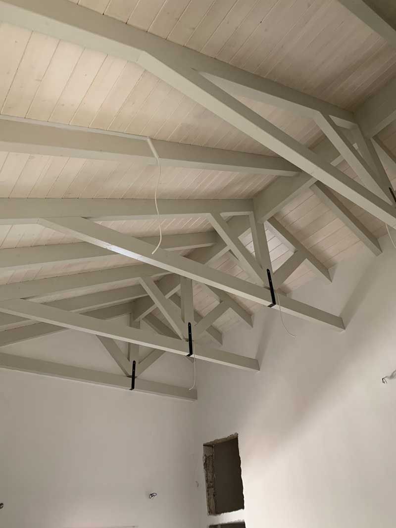 ξύλινης στέγης, συνήθως χρησιμοποιούμε μαλακά ξύλα με σκληρό πυρήνα, όπως είναι το πεύκο και το έλατο. Στη συνέχεια, το ξύλο εμποτίζεται από τα κατάλληλα φάρμακα ώστε να μην προσβάλλεται από έντομα όπως το σαράκι. Η πρώτη ύλη της σύνθετης ξυλείας συγκολλείται, σχηματίζοντας συμπαγείς μορφές που έχουν ενιαία δομή και μεγάλη αντοχή.